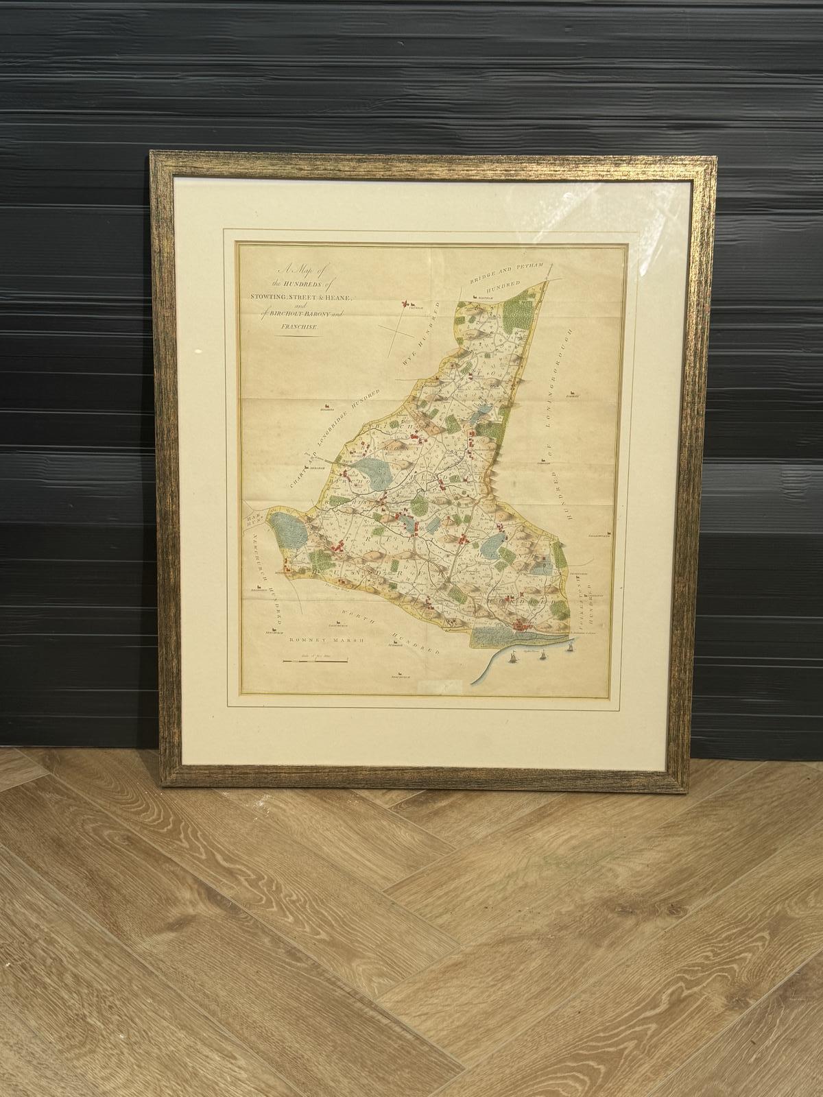 2nd edition map dated 1798: "A map of the Hundreds of Stowting Street & Heane and of Bircholt Barony and Franchise" title printed top left.