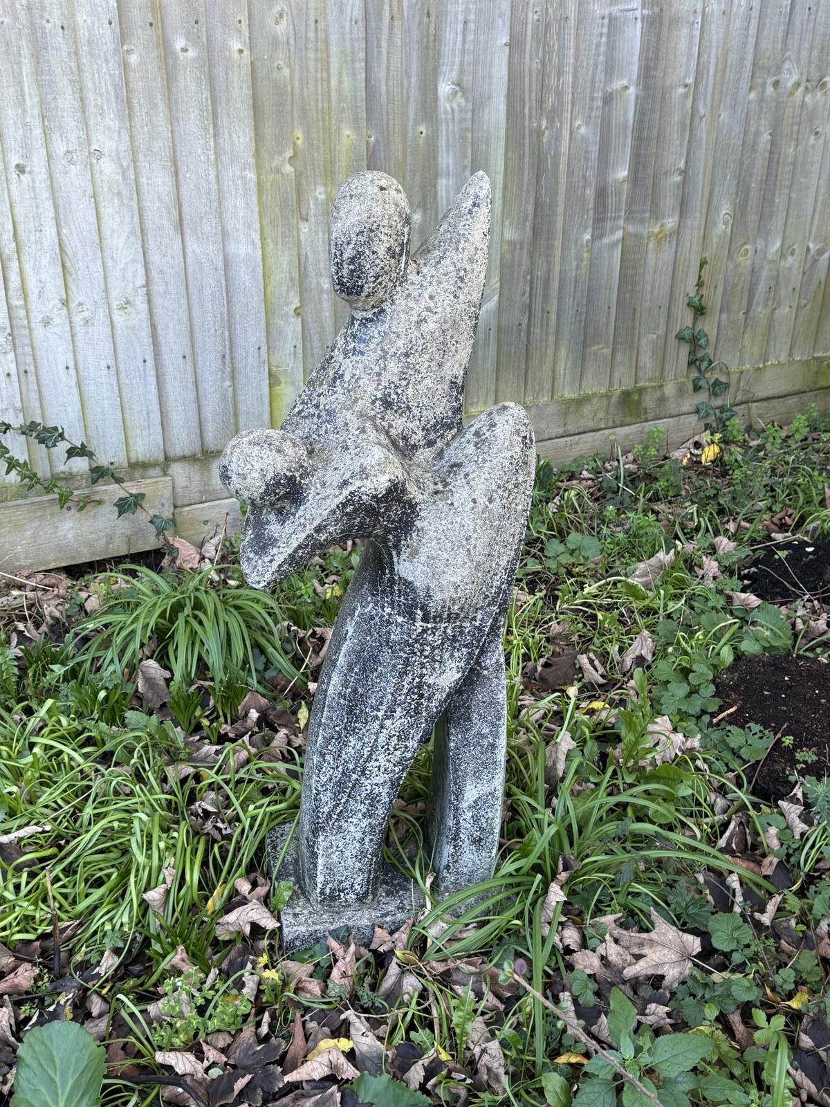 Composite Mother and Baby sculpture on a fixed base in a black covering but now very much faded with other age related marks.