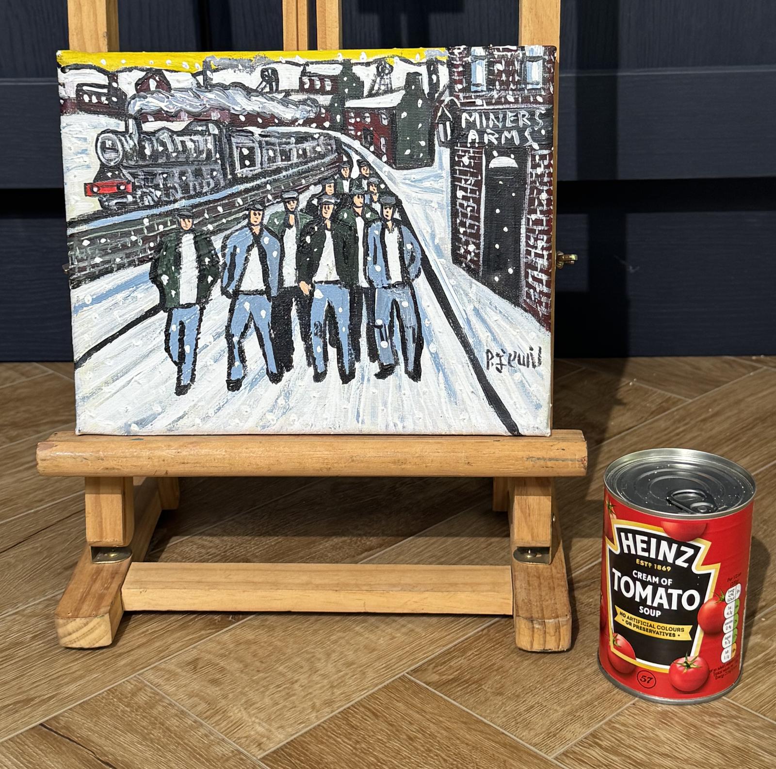 Oil on Canvas "Miners off Home in the Snow at Shift end" Bye