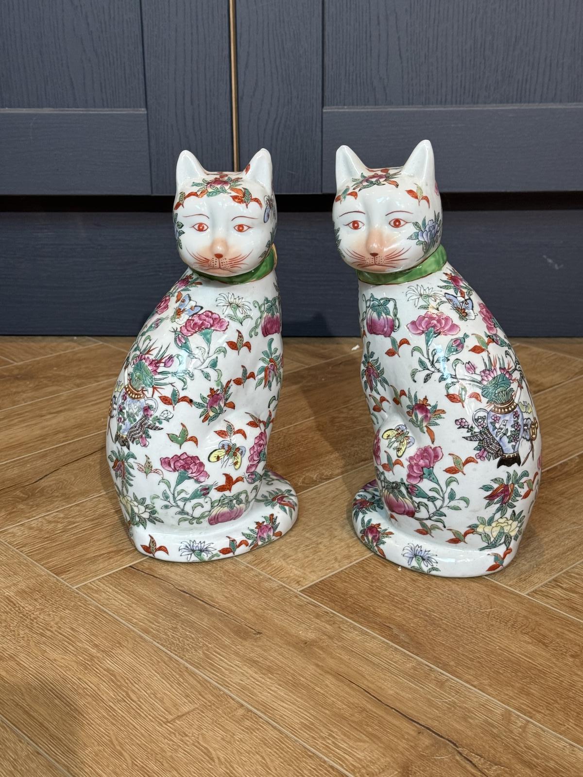 Pair of Antique Japanese Ceramic Cats