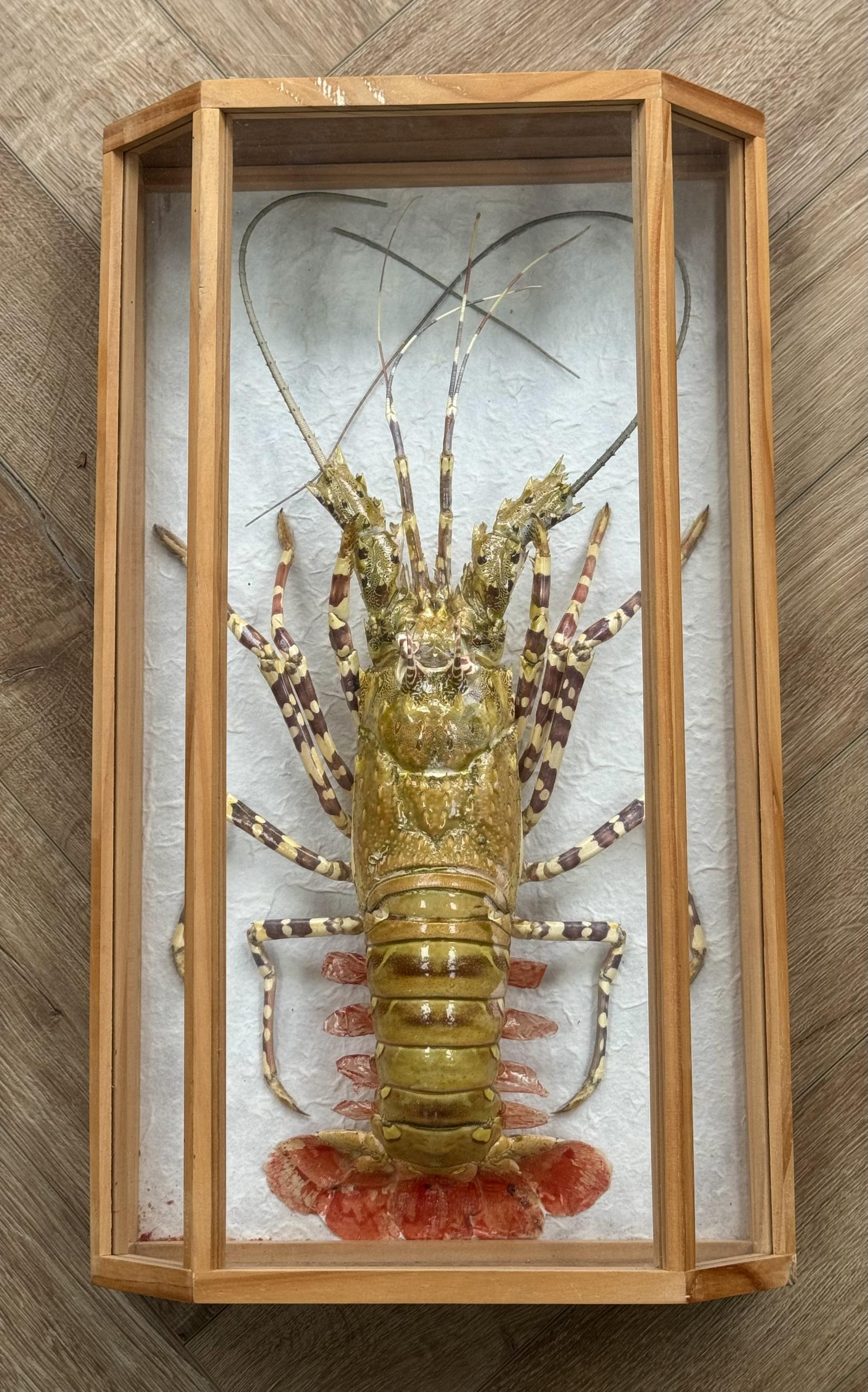 A late 20th century taxidermy specimen of a Crayfish, mounted within a glazed case, height 51cm, width 29cm.