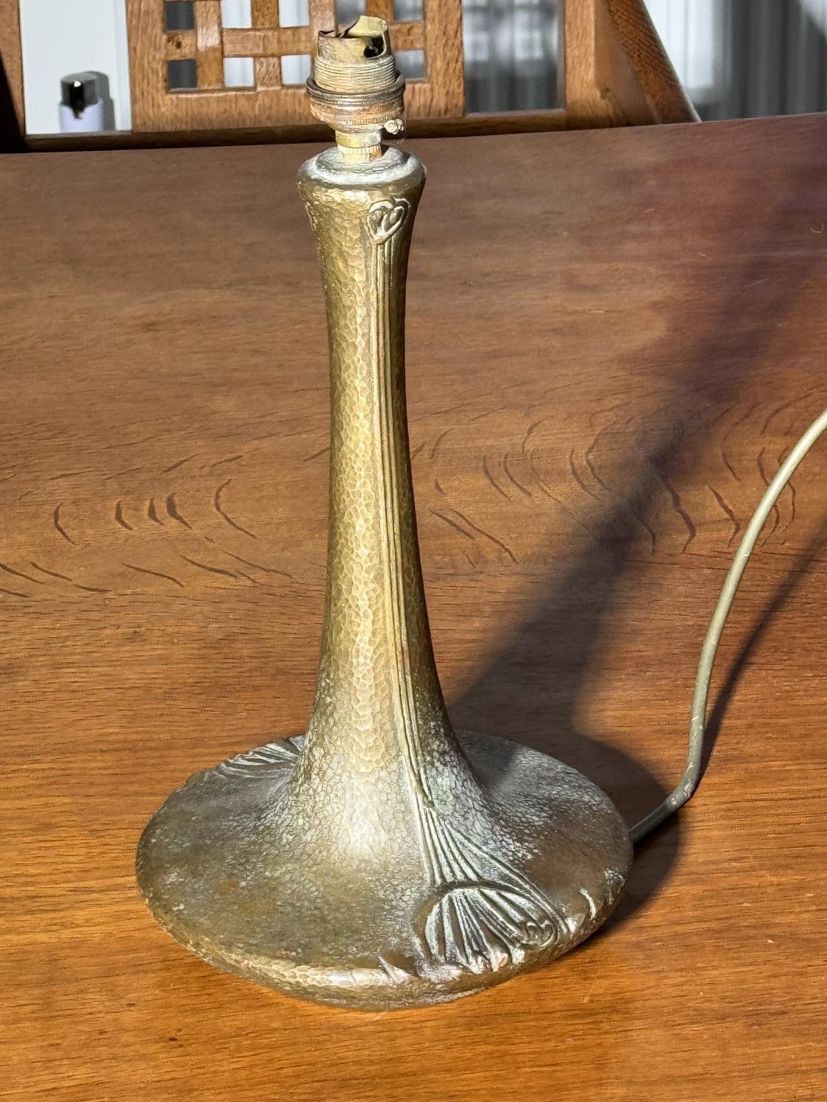 Offered for sale is this bronze lamp base in the style of tiffany (no marks). Stylised floral and Art Nouveau motifs from the top to the base.