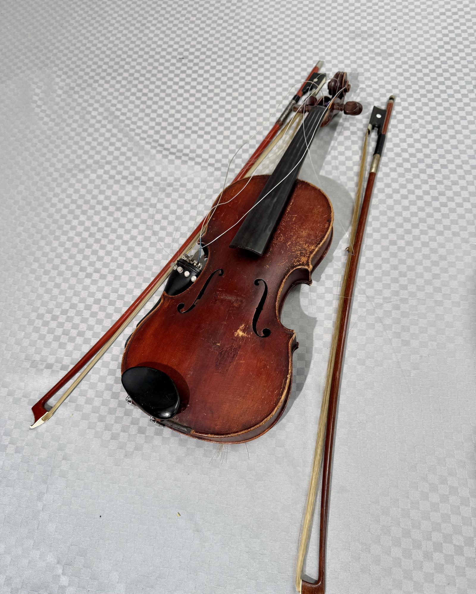 Violin by Mathias Nuener with a paper label inside that is too difficult to take a photo so please forgive me. The label reads " Mathias Neuner, Geigenma_Cher in Mittenwald. 1879 Nro 94. The violin is in untouched original condition and comes with a case and two bows.