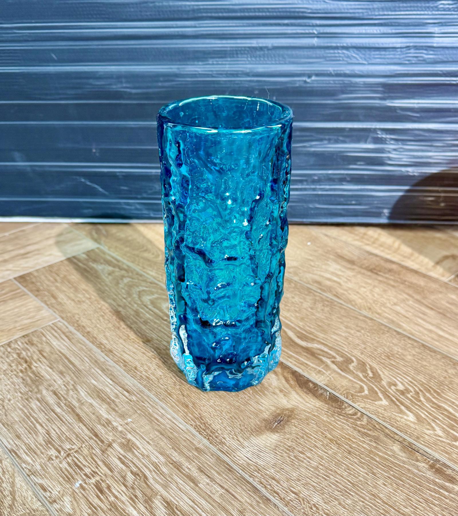 Whitefriars kingfisher blue bark vase at 19cm high. One of five Whitefriar pieces I have for sale and all in excellent condition.