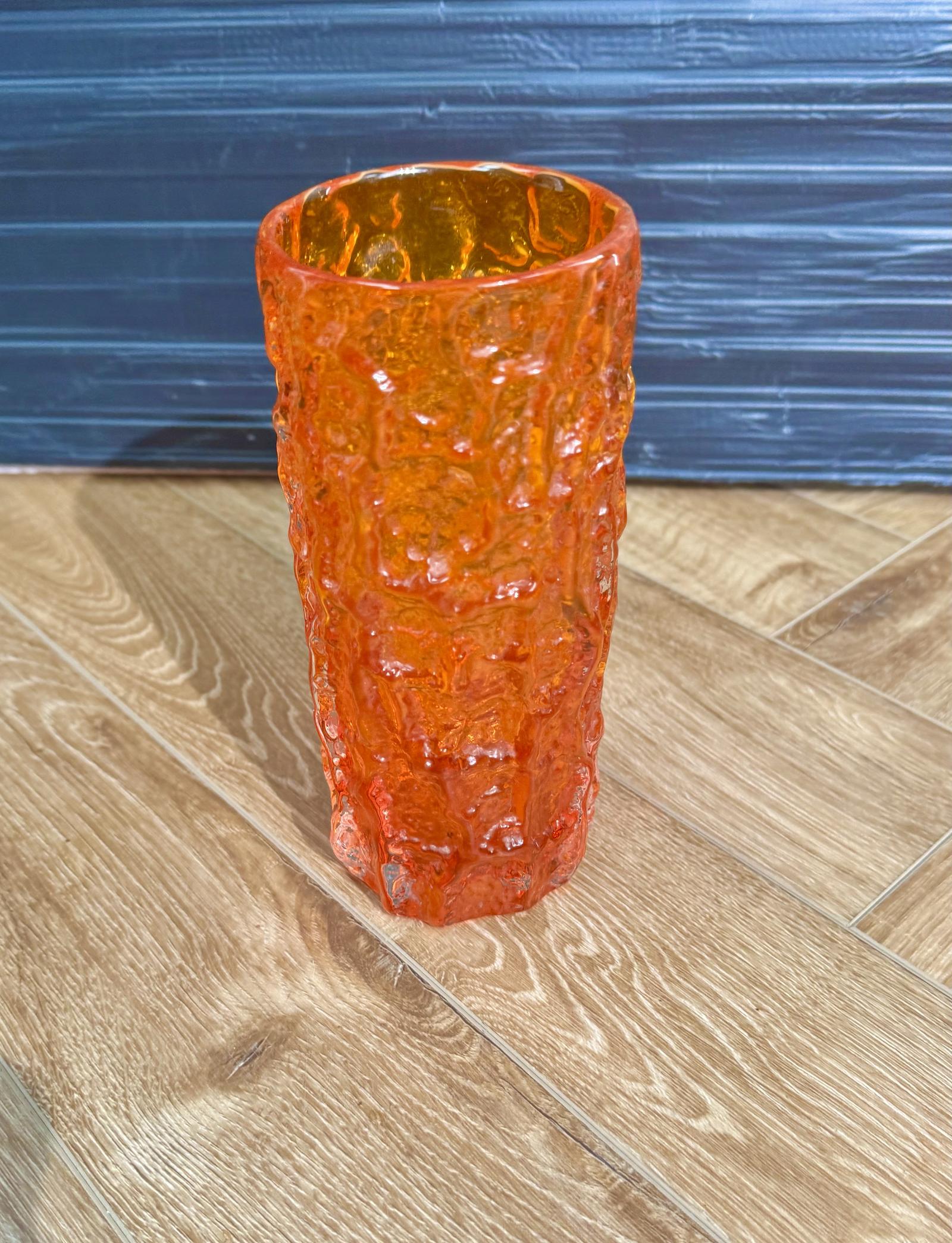 Whitefriars Orange bark vase by Geoffrey Baxter from the 1960s and 19cm high. In Excellent condition.